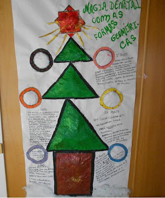 Depois da elaboração da história, pintamos, desenhamos, recortamos e colamos. Colocamos jornais velhos debaixo de cada uma das formas geométricas para lhe dar algum volume. Trabalharam-se também as cores. Assim surgiu este trabalho que gostaria de partilhar.